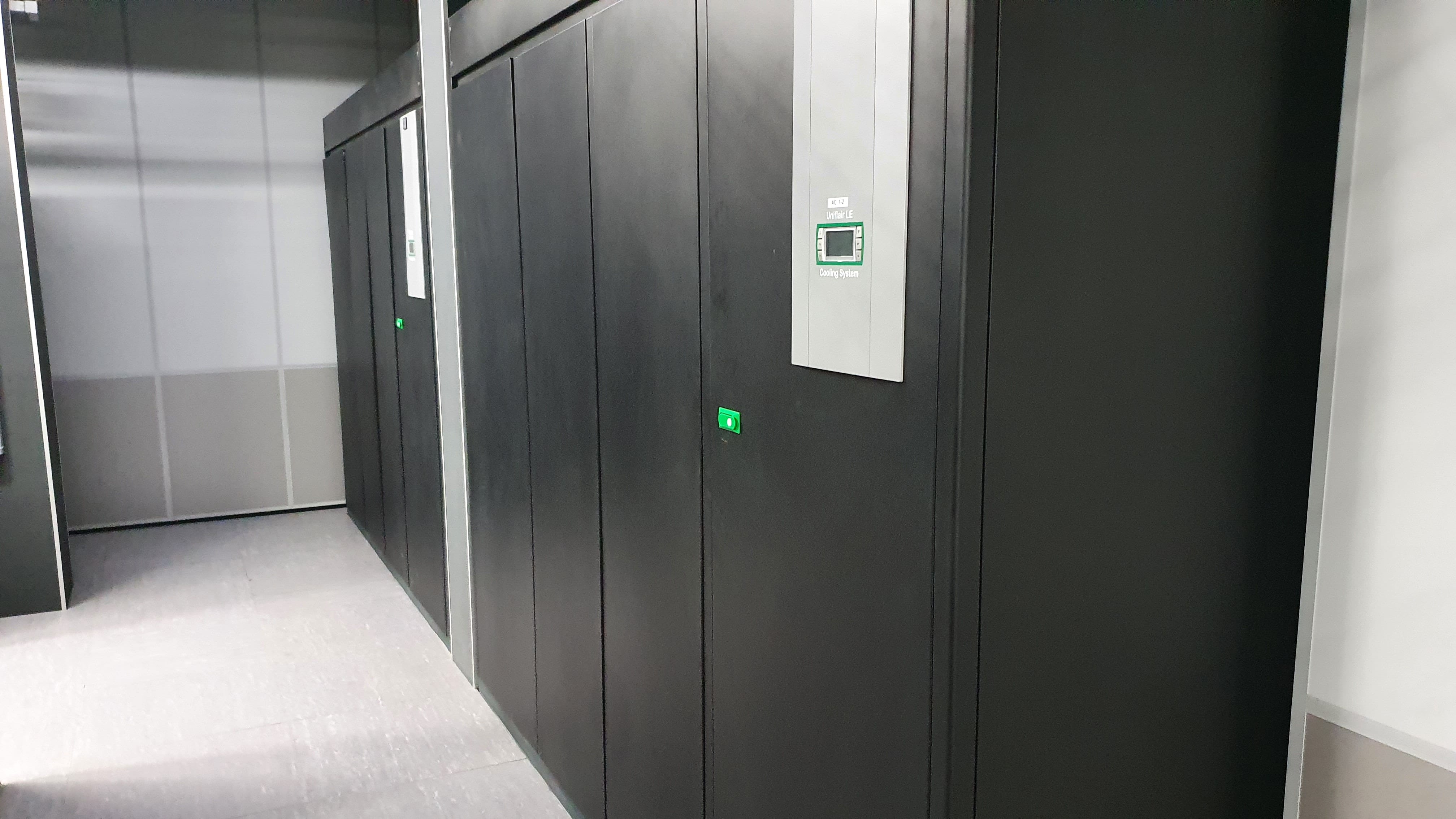 Система прецизионного кондиционирования построена на базе шкафных кондиционеров Uniflair (холодопроизводительностью 85 кВт каждый, схема работы N+3) и чиллеров Uniflair (холодопроизводительность 1 МВт, N+1).