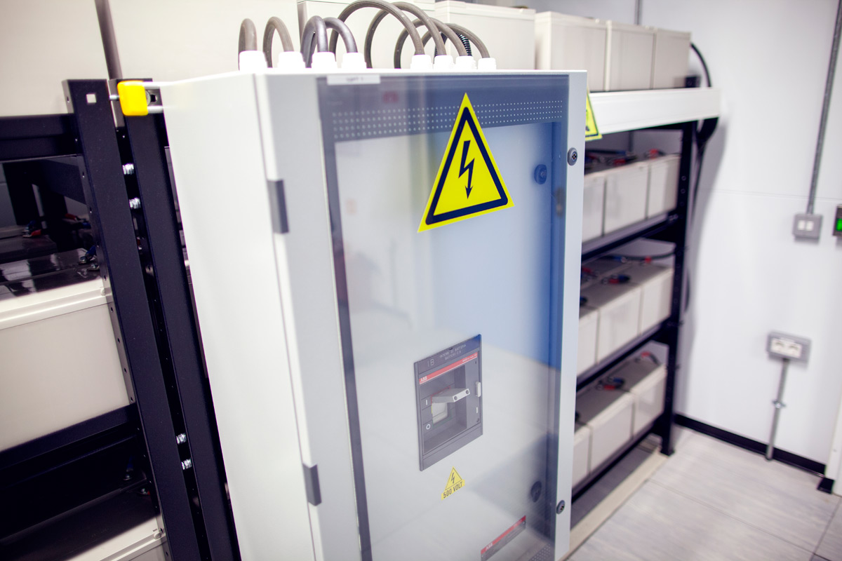 Используются источники бесперебойного питания Riello. Коэффициент эффективности 96 %. Модульное расширение. Простое обслуживание. Надежность. Элементы питания готовы снабжать электричеством работающий с полной нагрузкой центр обработки данных в течение 15 мин. Дублирование 2(N+1).